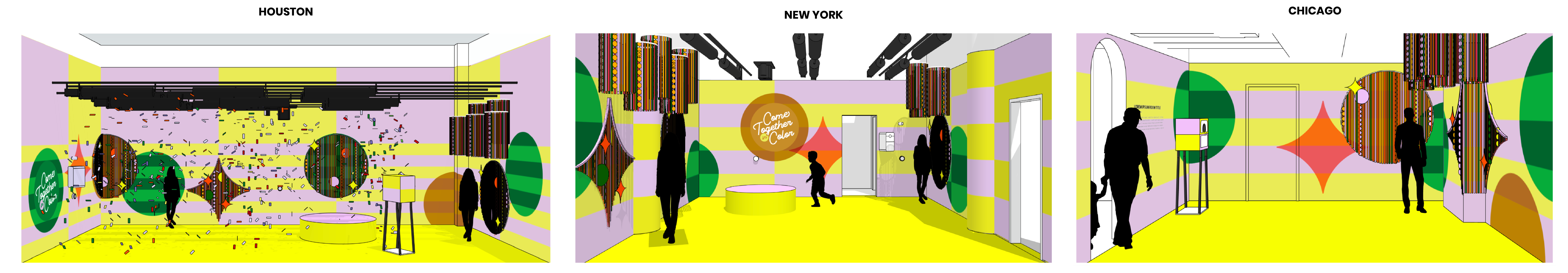 An immersive art installation at Color Factory for their 2024 Holiday Campaign, Coming Together in Color. The installation included 360° custom designed and handpainted murals, interactive hanging sculptures, and continusouly falling confetti in a variety of curated colors.